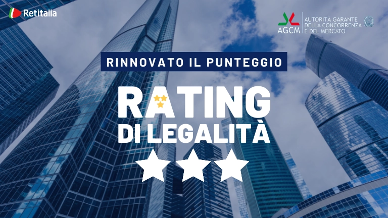 Rating di Legalità, Retitalia ottiene il rinnovo del punteggio massimo di tre stelle.